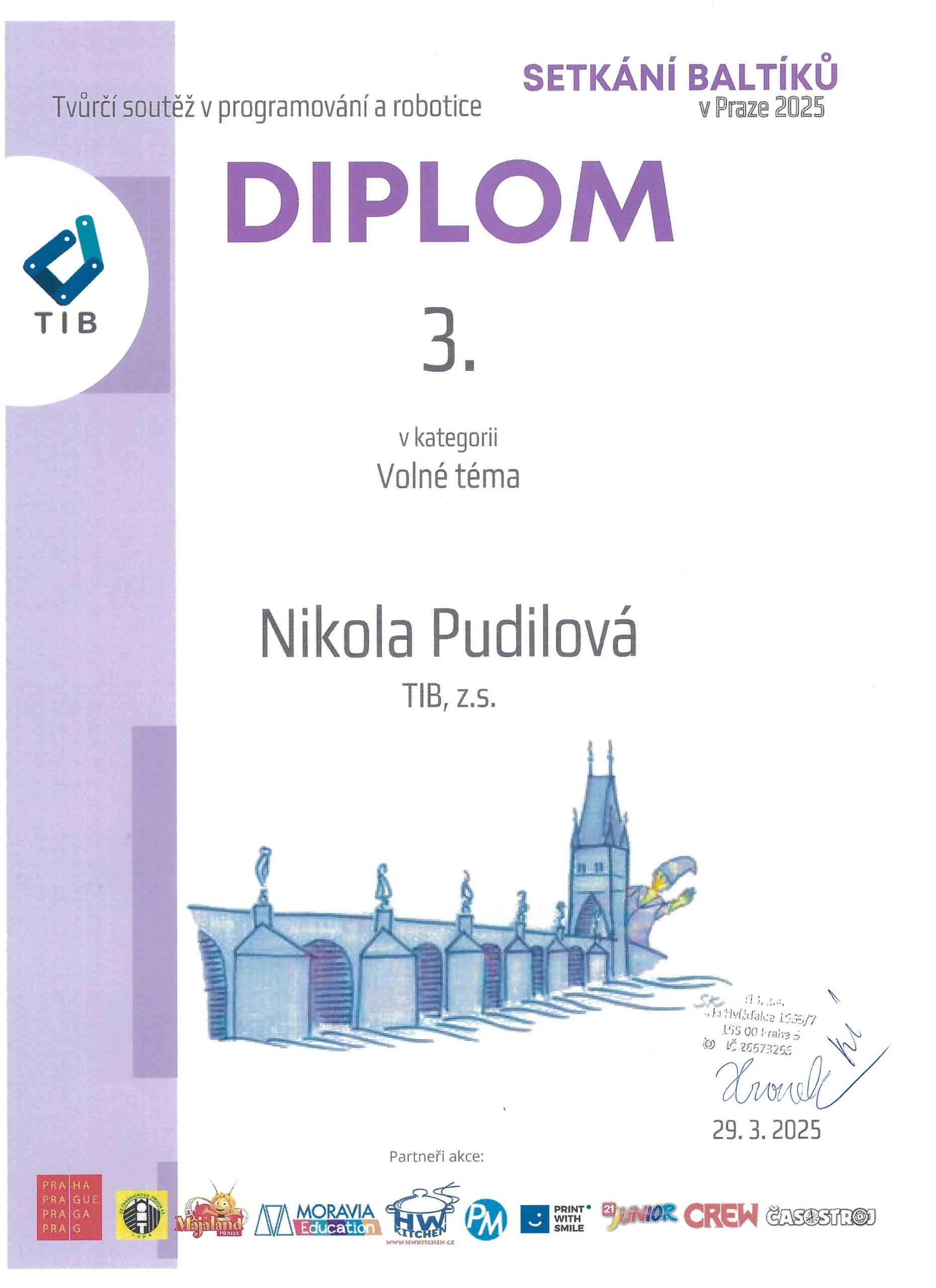 Moje práce byla vybraná jako jedna z nejlepších prací a nebylo dané žádné pořadí.